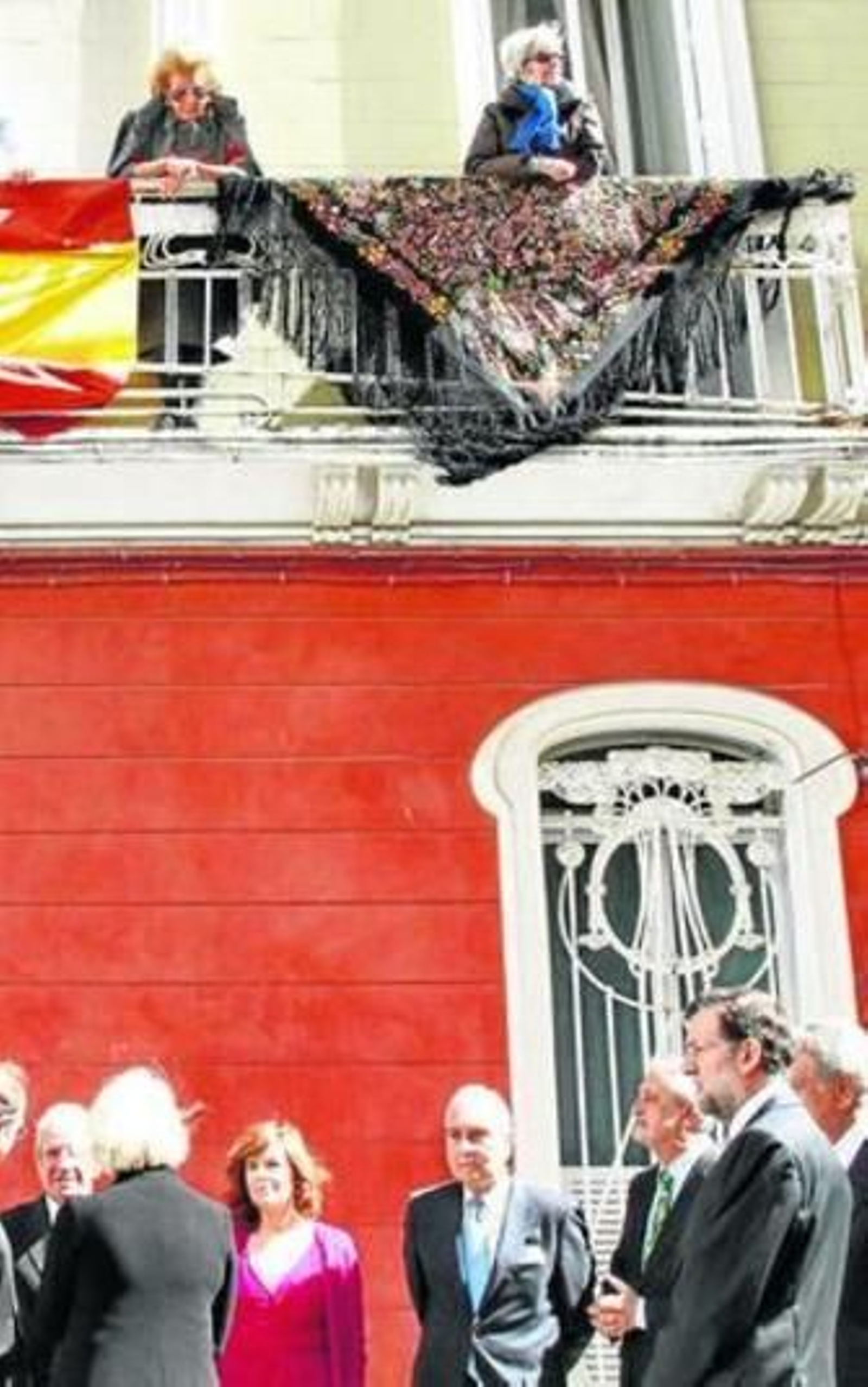 Numerosos balcones de los alrededores del templo habían sido engalanados con banderas españolas para recibir a sus majestades los Reyes y al resto de autoridades que ayer se congregaron en el Oratorio de San Felipe Neri. No obstante, también se dejaron ver algunas banderas republicanas en la misma calle del templo. Una de enormes dimensiones lucía en la fachada de la sede de Izquierda Unida, donde también colgaba una pancarta en la que se leía: "Reforma Laboral para la Casa Real". Y otras dos enseñas ondeaban en balcones de particulares. "Esto es una provocación", expresó un transeúnte al verlas. Otro, en cambio, celebró su presencia con un "¡Olé, qué arte de banderas!". Un militante de IU sonreía mientras alguien en la sede daba al play al Himno de Riego: "Bueno, era por darle algo de vidilla a esto". Pero dentro de esa obligada rebeldía, lo cierto es que, cuando llegó el Rey, Riego ya había enmudecido.